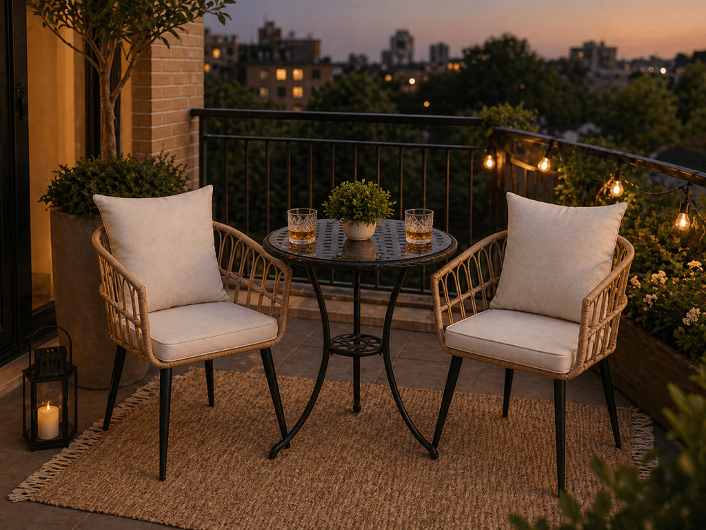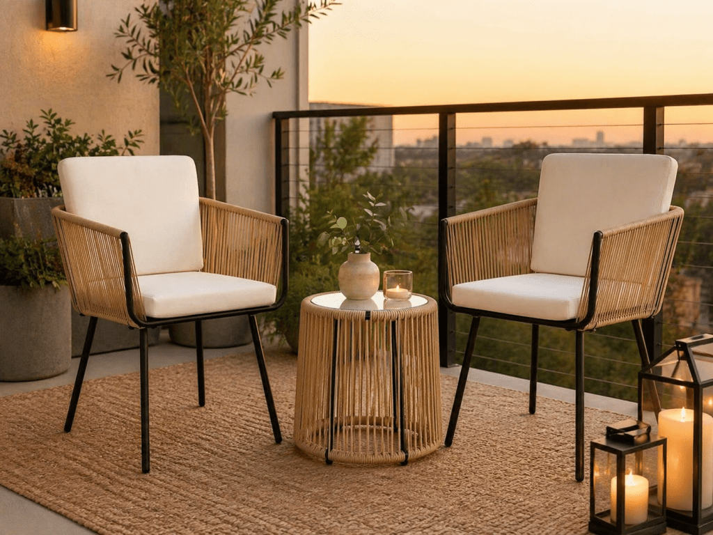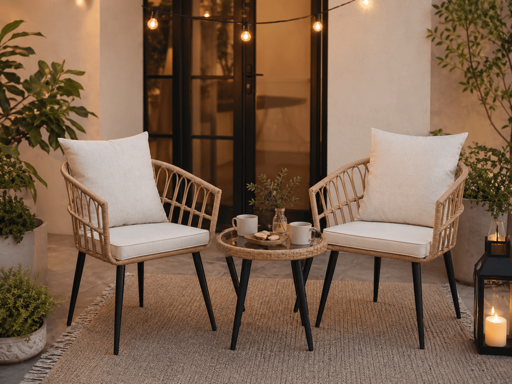 Not every small-space patio set reads elevated, and not every affordable set deserves to. But some do a much better job than others of bringing in the woven texture, lighter scale, and visual softness that make an intimate outdoor space feel more finished. The best ones work because they do not ask too much of the footprint. They simply make it easier to sit outside well.